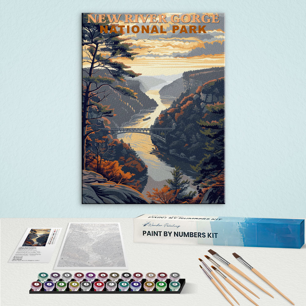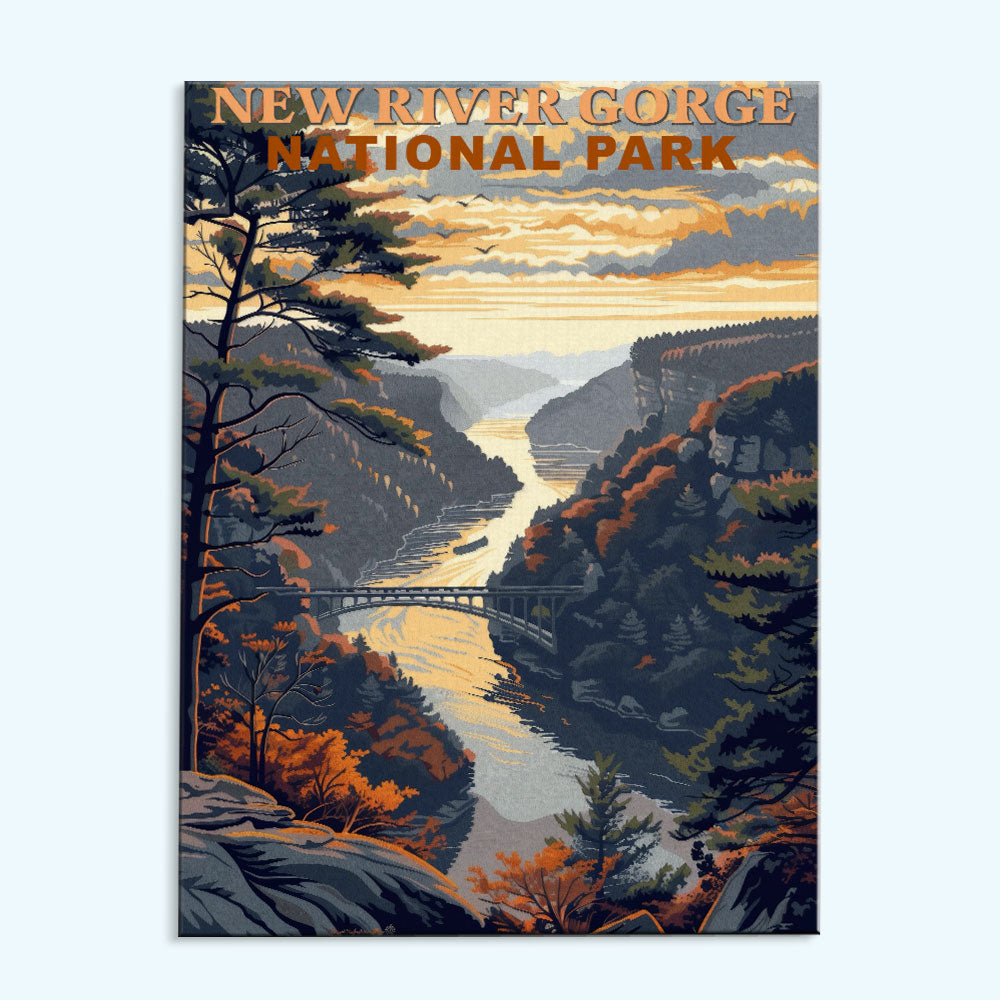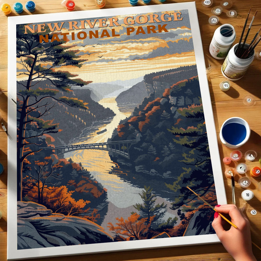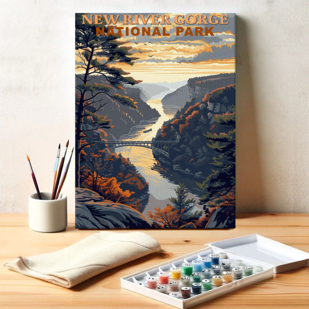 New River Gorge Nationalpark Vintage | Malen nach Zahlen Set