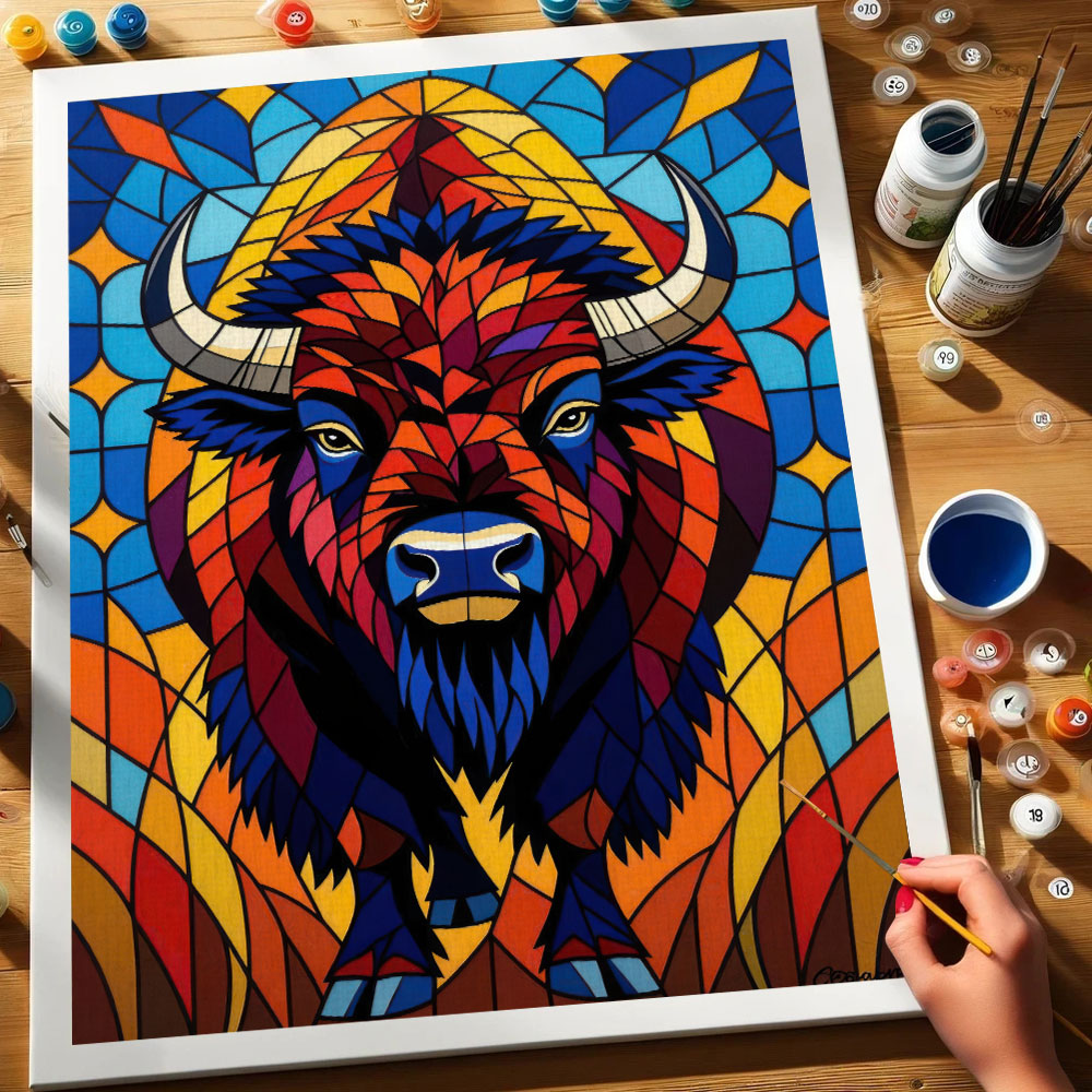 Bison Stained Glass - National Park Wildlife | Paint by Numbers Kit