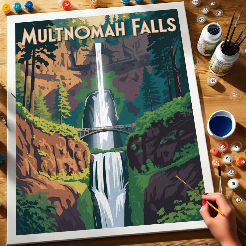 Multnohma Falls - U.S. Waterfalls | Paint by Numbers Kit